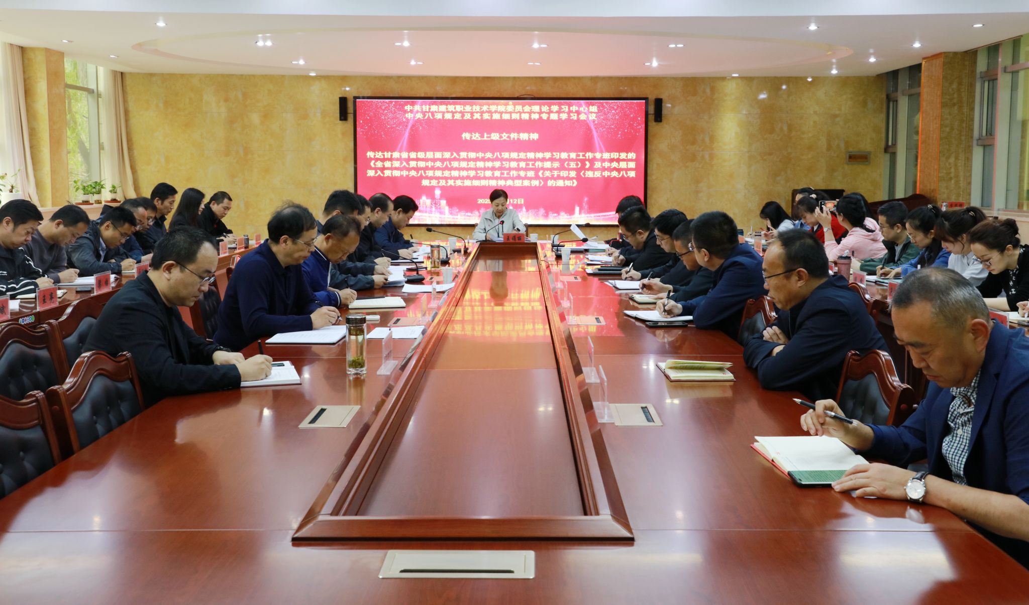 5月12日,甘肃建筑职业技术学院党委理论学习中心组召开专题学习研讨会议。党委书记王娟丽及领导班子,中心组全体成员参加学习会议,会议由党委宣传统战部高建兴主持。
