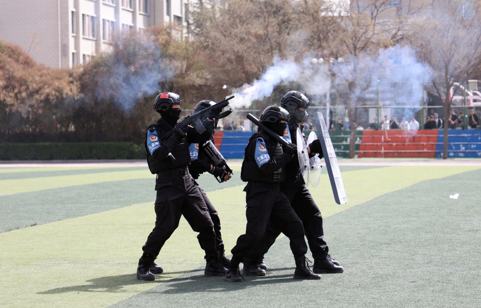 为深入贯彻落实习近平总书记关于加强国家安全教育的重要指示批示精神,推进国家安全法治宣传走深走实,4月15日,在第十个全民国家安全教育日,我校与兰州市公安局七里河分局反恐特警大队联合开展了反恐防暴处突演练,共有1500余名师生参加。